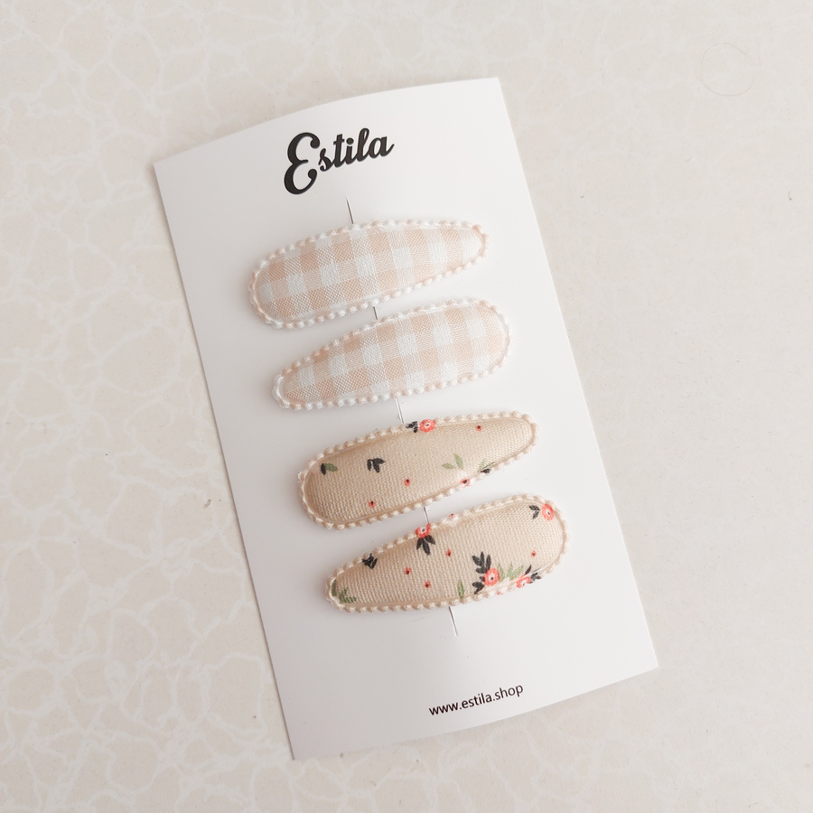 2 pares Clips Cuadrillé Beige & Flores