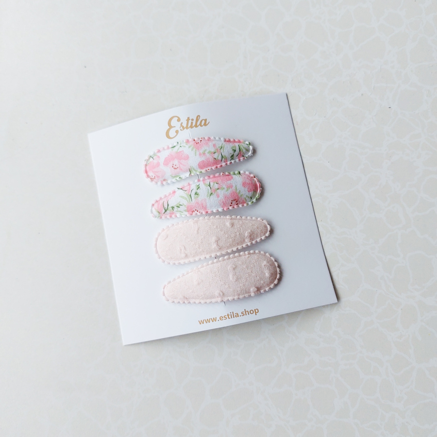 2 pares Clips florecitas rosadas & melocotón embroidery