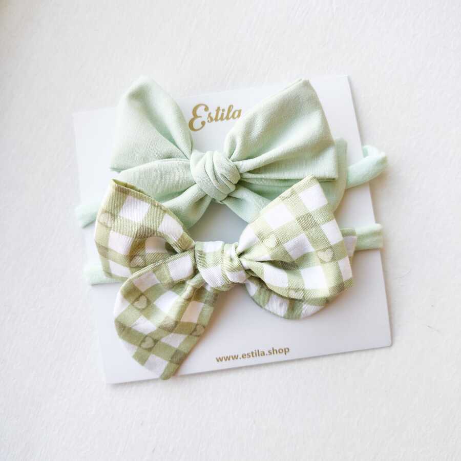 2 Cintillos hechos con tela 100% algodón. El lazo mide 8 x 5 cm. aprox.