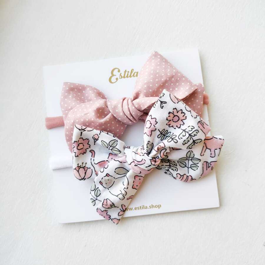 2 Cintillos hecho con tela 100% algodón. El lazo mide 8 x 5 cm. aprox.