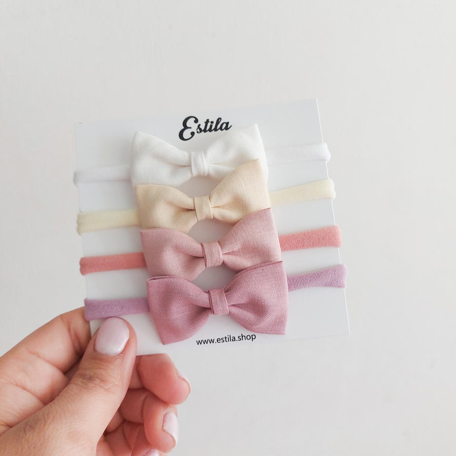 Set Cintillos Mini Emma Ivory & Flores Pasteles