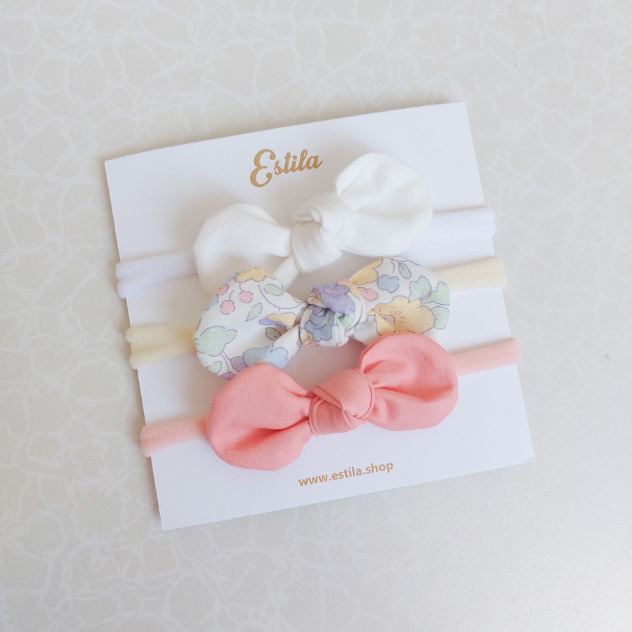 3 cintillos nuditos hechos a mano con telas de algodón.