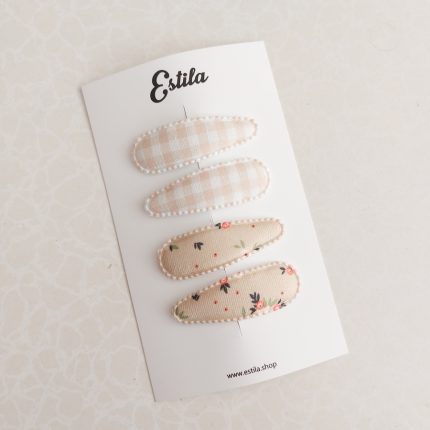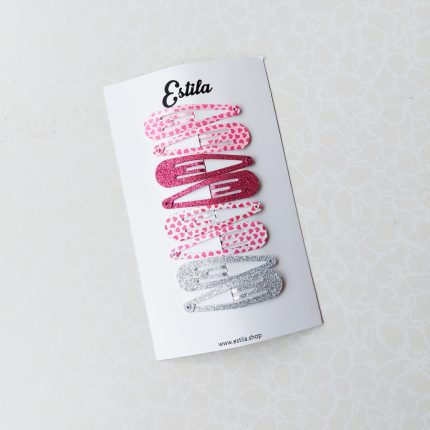 Set de 2 Clips metálicos de 5cm, forrados con cinta y llevan un corazón acolchado