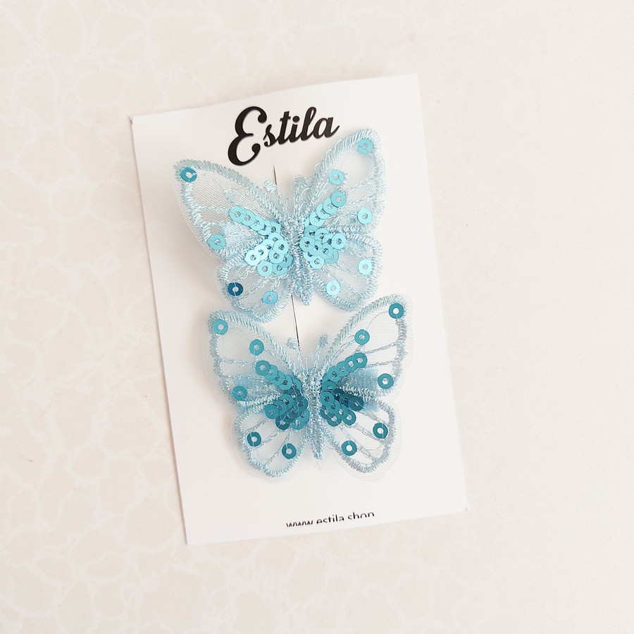 Pinzas Mariposas Lentejuelas Celeste