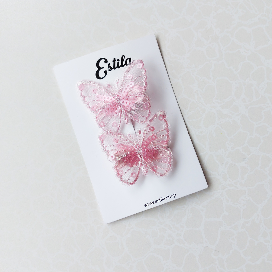Pinzas Mariposas Lentejuelas Rosada