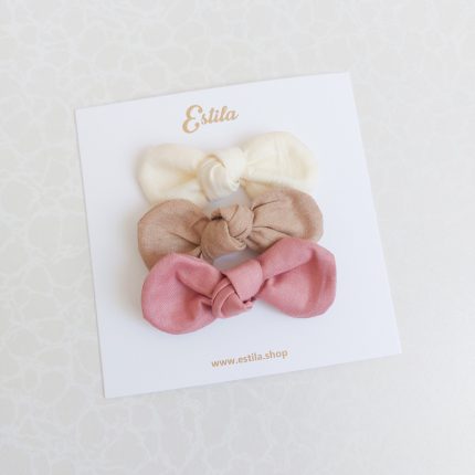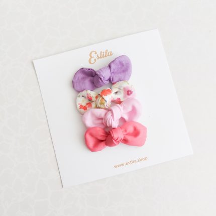 Dimensiones nudito tela 6 x 3 cms. aproximados. El agarre es con pinza metálica tipo cocodrilo de 4,5 cm.