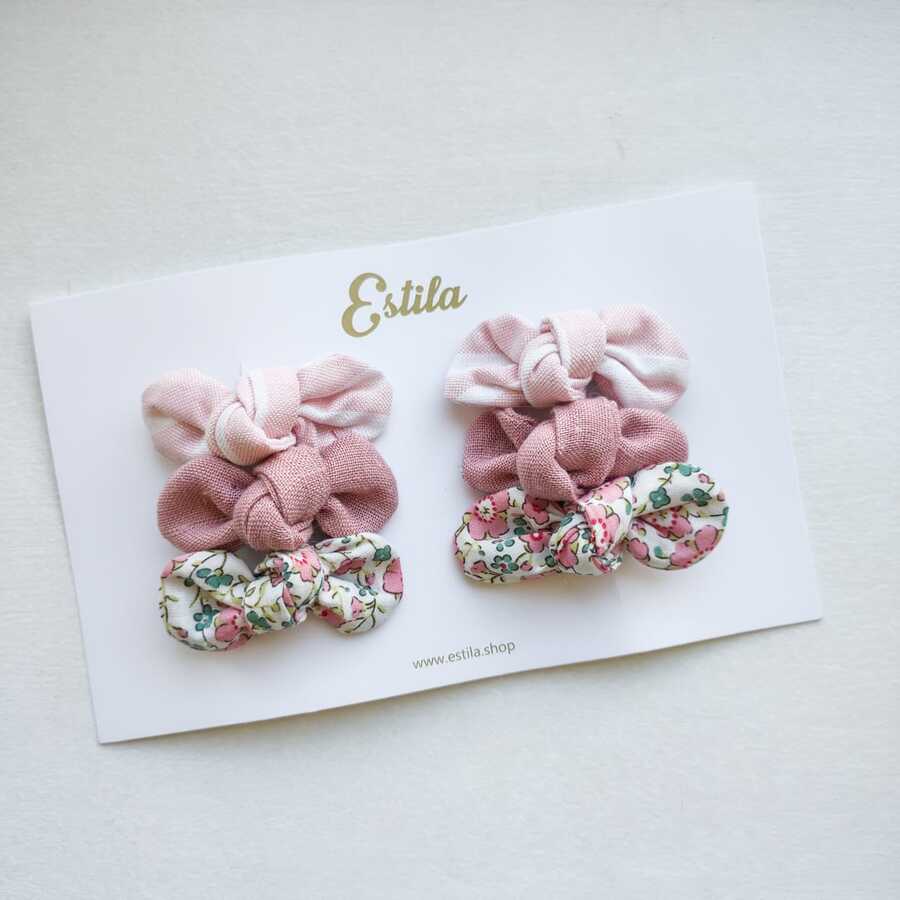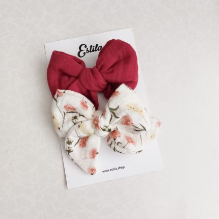 Dimensiones nudito tela 6 x 3 cms. aproximados. El agarre es con pinza metálica tipo cocodrilo de 4,5 cm.