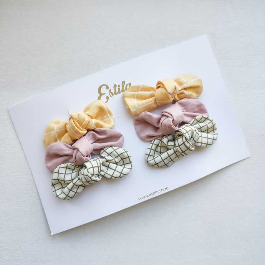 SALDO Set Pinzas Nuditos Vainilla,lila claro & cuadrillé Pares