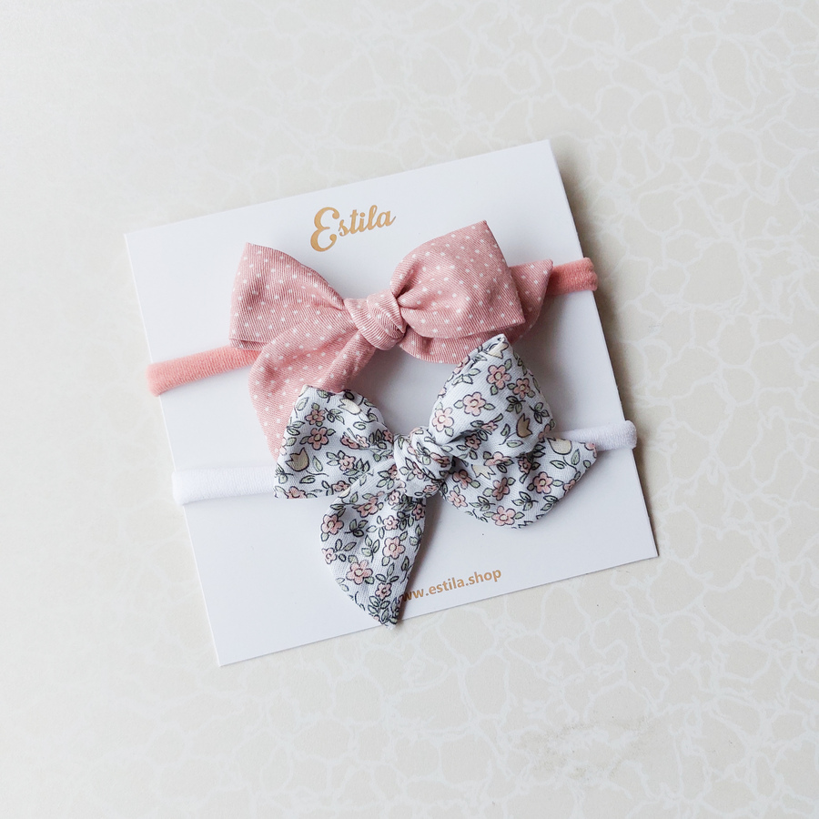 Set Cintillos Mini Emma Rosa Pastel Lunares & Pequeñas Flores