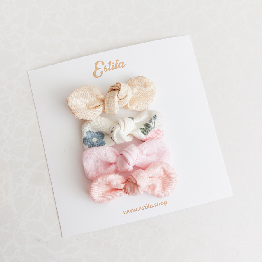 Set Pinzas Mini Nuditos Beige, Blanco Flores & Rosados